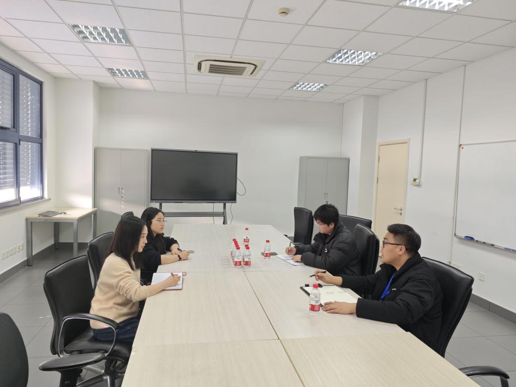 2025年2月26日下午,华体体彩电气与汽车工程系副主任刘天雄、机电教研室主任王苏皓、机电教师丁宇航一行人赴威尔斯新材料(太仓)有限公司洽谈校企合作,威尔斯人事行政经理徐萍萍,人事主管施梦琦参加会议。