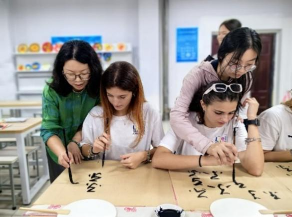 9月18日下午,在艺术系专业指导老师的指导下,意大利学生们体验了毛笔书法,感受了中国文字的历史与智慧。