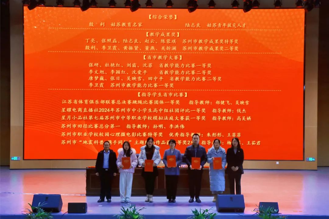 本学期,全体教职工齐心协力,开拓创新,在教育教学方面均取得了令人瞩目的显著成就。这一年,教师们守初心创特色,凝心聚力谋发展;勇担当敢作为,实干笃行展风采。在学校重点工作中,一大批教师取得了优异成绩。会上,对姑苏教育名家、姑苏青年拔尖人才、教学成果奖、省市教学能力大赛、指导学生省市教学能力大赛中取得优异成绩的教师进行了表彰。