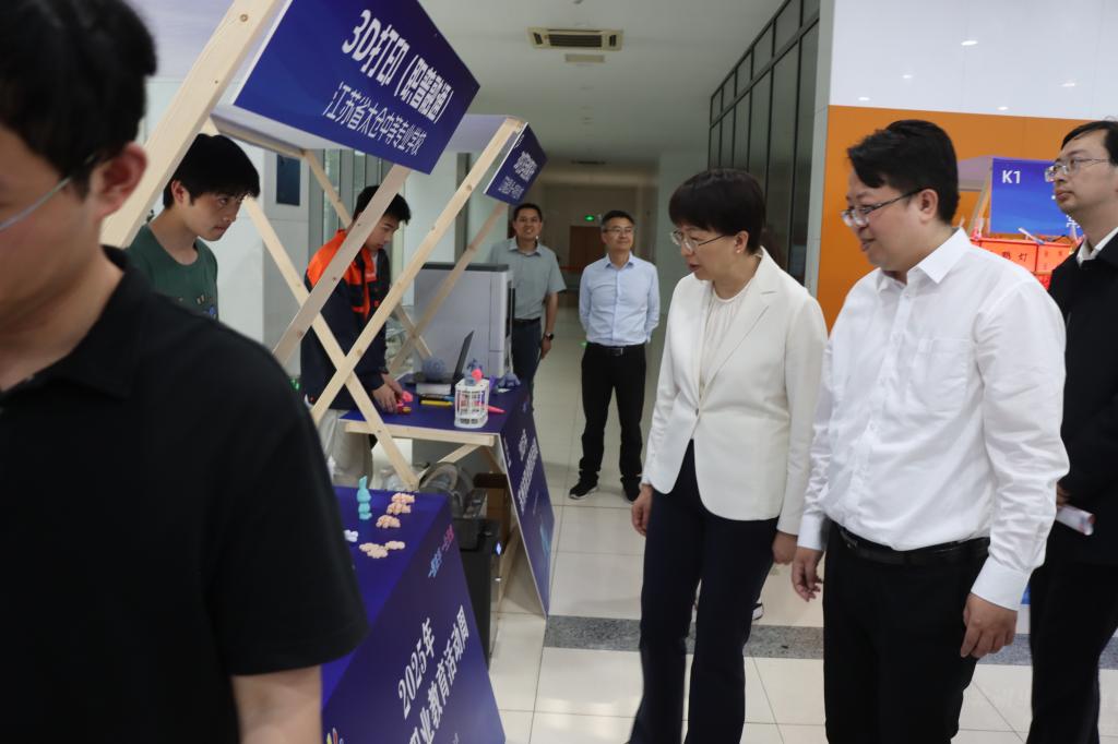 李广耀深入太仓中专展区,逐一驻足各特色展位,与师生亲切交流并慰问,俞杨、陆金华陪同参观。