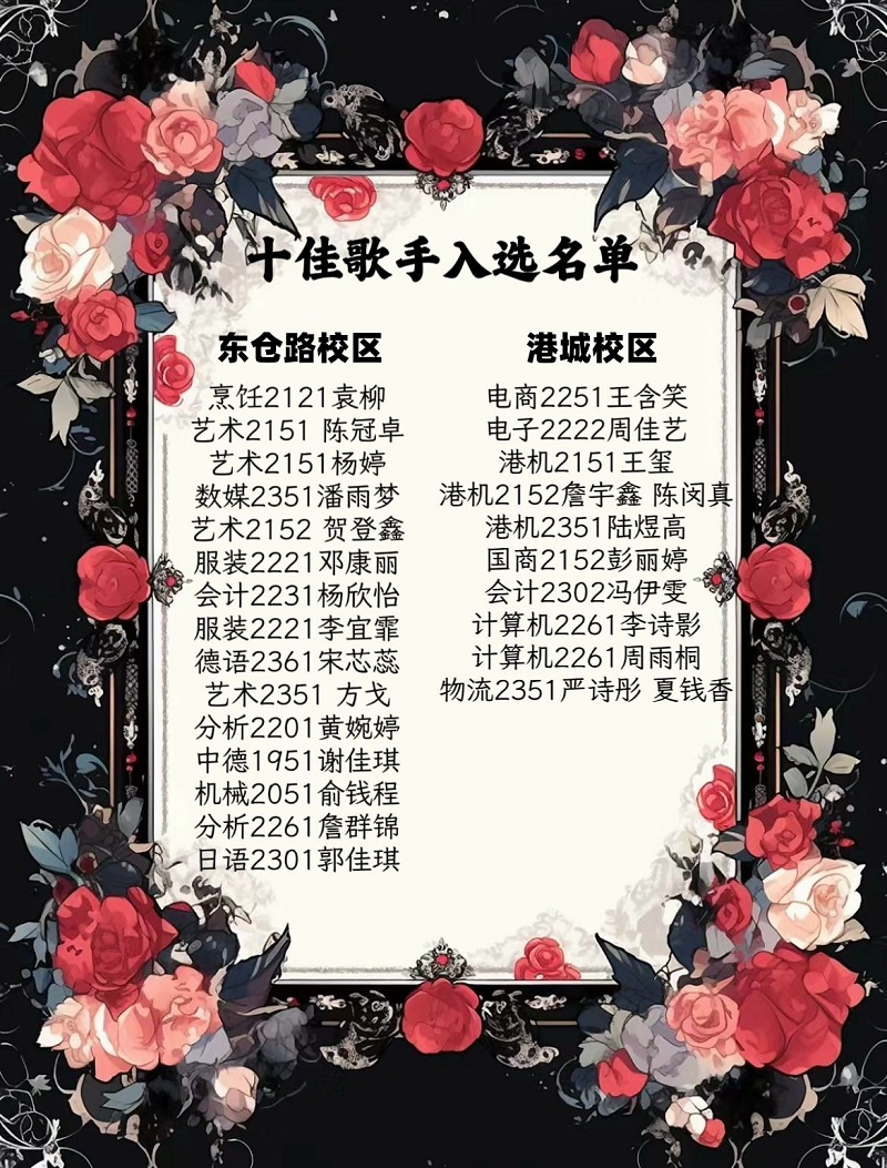 经过各系部、中心前期的初赛选拔,各推选出了优秀班级参加校级决赛环节。2023年12月6日下午,华体体彩“唱响校歌,唱响青春”歌唱比赛决赛在港城校区报告厅举行,由杜艳红副校长、音乐专业顾薇老师、团委书记李婷玉老师担任此次比赛的评委。 本次比赛也为校园文生活化注入了更多的青春活力。